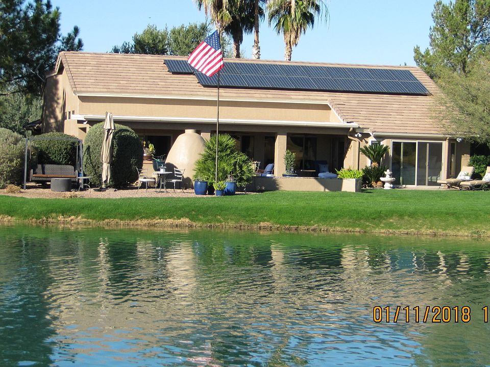 Own your own peice of paradise with this beautiful Quail Creek home with more than $200k in upgrades! House overlooks private lake and the golf course. Interior features 2 bedrooms, 2 bathrooms plus a den or office. Upgrades include appliances, bay windows and custom shutters, additional lighting and ceiling fans, wood floors in bedrooms, epoxy flooring in garage and solar upgrades. Back yard has covered patio and built in BBQ and front has additional landscaping for privacy. Community pool and Rec areas available.