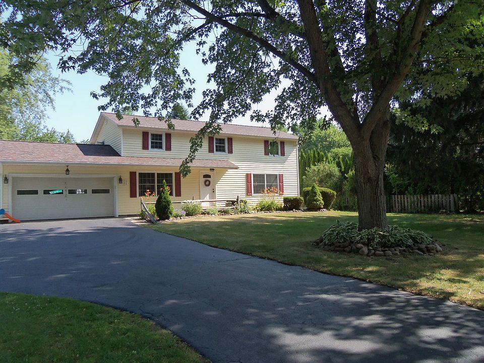 Nestled on 3/4+ acres, 2,288 square foot colonial with a 2 car attached garage, 3 bay 30'x 59' pole barn with cement floor & separate stone drive. This home features 4 bedrooms, 2 1/2 baths, spacious 1st floor mudroom/laundry, huge updated eat-in kitchen and formal dining room with cherry hardwood floors, living room and bedrooms feature oak hardwood floors, 1st floor den/office, updated roof, windows, siding and more! See the list of updates (listed in the attachments) that the owners have done since their purchase in 2009. 100% money back program available to Buyers.
