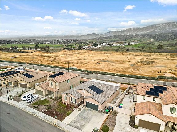 This is a wonderful house that is only 4 years old located in the Garland Community at Summerwind Trail. From the moment you enter this home you feel a spacious atmosphere due to the open concept of this home. With a beautiful view to the mauntains.This home features 4 bedrooms and 2 full bathrooms. The bedrooms are all decent sizes and the master bathroom has a double vanity with a closet inside to store personal items. The kitchen has granite countertops with a cozy environment while you prepare food for your family and friends or while talking and enjoying your favorite movie together. It has its own dining room area and the family dining room has been closed off so there is more privacy to use the space for a study/office or even a 5th bedroom for bigger families. The entire house has shutters that open or close whenever you wish to feel the cool breeze outside. The entire house has a fire sprinkler system.The laundry area has its own personal room for maximum space. This home has a back patio that is cemented and covered, perfect for lounging outside with company. The driveway has enough space for 3 cars with a double car garage.This home is within walking distance to a shopping center with plans to build a mall nearby similar to the one in Cabazon. Don't miss this wonderful opportunity to come by and see this beautifully designed home.