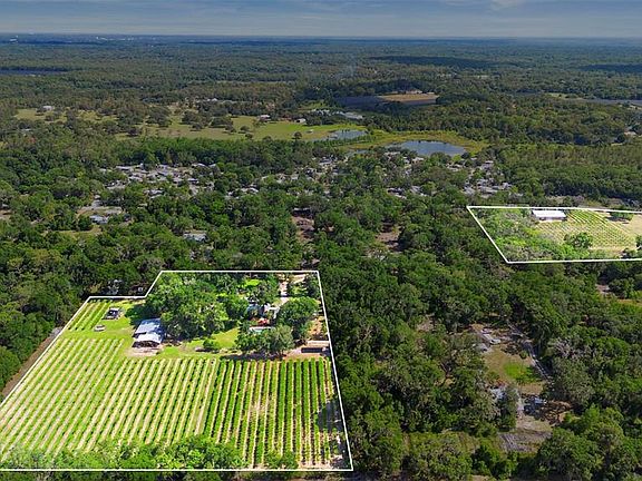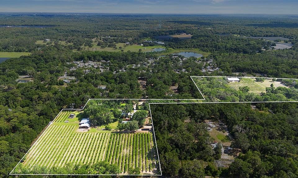 TWO PARCELS – OVER 20 ACRES – INCOME-PRODUCING GRAPE FARM WITH RESIDENCE, RETAIL SHOP & AGRICULTURAL EXEMPTION A rare opportunity to own land, residence and ESTABLISHED YOU-PICK BUSINESS AND VINYARD in De Leon Springs—1056 & 980 Reynolds Rd—offering residential comfort, active farming, and retail potential in one unique package. ----1056 REYNOLDS RD – 7.25 Acres (Set Back from Road)----: Privately tucked away from the street, this updated ranch-style home features 4 bedrooms and 4 bathrooms, including a fully FINISHED BASEMENT with two bedrooms, a bathroom, and a living room. Upstairs offers a spacious living room with high ceilings and a classic wood-burning BRICK FIREPLACE, two bedrooms, two bathrooms, kitchen, dining area, and laundry. Step outside to a wood deck overlooking a 9.5-ft deep inground POOL. The property includes multiple outbuildings—a POLE BARN, DIESEL GENERATOR, WORKSHOP, diesel generator shed—and a detached garage with its own bathroom and a finished MAN CAVE WITH BAR. The lot is oversized, level, and fully fenced, with a dedicated dog run. The house has double-pane insulated windows for energy efficiency. Built in 1973, the home has been modernized over the years while maintaining its rural charm. ----980 REYNOLDS RD – 13.18 Acres (Frontage on Reynolds Rd)----: Positioned with direct street frontage, this parcel operates as the public-facing side of the grape farm, complete with a nostalgic retail and tasting shop where customers can check out after picking grapes, and enjoy home-made grape jelly and popsicles. A large pole barn, workshop, and carport provide ample storage and workspace. Approximately five acres are fenced and used for cattle, supporting the agricultural exemption. The entire lot is high and dry (not in a flood zone) and fully fenced for security. COMBINED PROPERTY FEATURES: ** Total of 20.43 acres (7.25 + 13.18) ** Two parcels sold together—live on one, operate on the other ** Fully fenced, gated, and agriculturally exempt ** Updated 4BR/4BA home with pool, fireplace, and basement ** Income-producing grape farm with retail/tasting operation ** Multiple barns, sheds, workshops, and storage buildings ** Private living with road-front visibility for business ** Zoned for agricultural use and farm animals and hobby farming This is a versatile and truly special offering—ideal for anyone seeking space, privacy, and business potential in a peaceful rural setting.