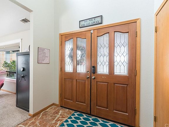 Beautiful 4 bedroom home on expansive lot in highly sought after neighborhood! This bright and welcoming home features a unique stained wood entry ceiling, granite countertops with travertine backsplash in kitchen and baths. Many upgrades throughout including: exterior paint, garage door & opener, furnace replaced in 2015, Levolor custom cordless roman shades throughout, freshly landscaped front yard, and solar panels with current output and usage maintaining a $0 energy bill! Backyard updates include 1,200 Sq.Ft. of stamped and colored concrete, built in fire pit, new retaining wall and steps built with top of the line blocks, and a brand new (built in 2021) 20'x36' inground pool in the spacious backyard.