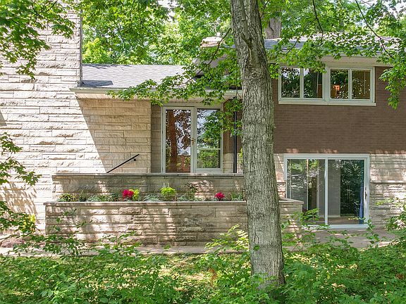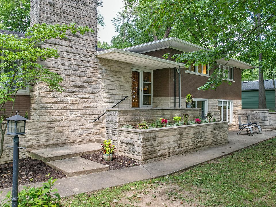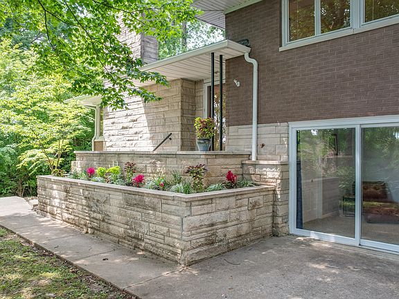 Exceptional Stone and Brick, Frank Lloyd Wright inspired home, perched on a hill, with an abundance of trees from every window. If you enjoy spending time out doors, this home is for you. Offering over 2,500+ sq. ft., this charming home boasts 3-4 bedrooms with 3 full bathrooms. The fully finished walk out basement can be used as 1 or 2 en-suites and can be perfect for someone that wants privacy. Brand new full bath with a walk in shower was built in 2023. Plenty of windows provide an abundance of natural light and access to a private patio. Living room features a gorgeous stone fireplace as well as an open concept to the dining room. Remodeled kitchen with matching appliances make for a move-in-ready home. Off of the kitchen you find an attractive family room that leads out to the back patio. 3 bedrooms and 2 baths are on the upper section of the home 1 of which is an en-suite equipped with a shower. Hardwood floors across the bedrooms. 2 car garage is heated and cooled and provides additional parking. Gorgeous landscaping in the raised stone tower planters. shed conveys with the property and provides additional storage. 1 year home warranty completely provided complimentary of the seller. The current owner has loved this home so much that she bought for a second time. Homes like these do not come up often, don't delay.