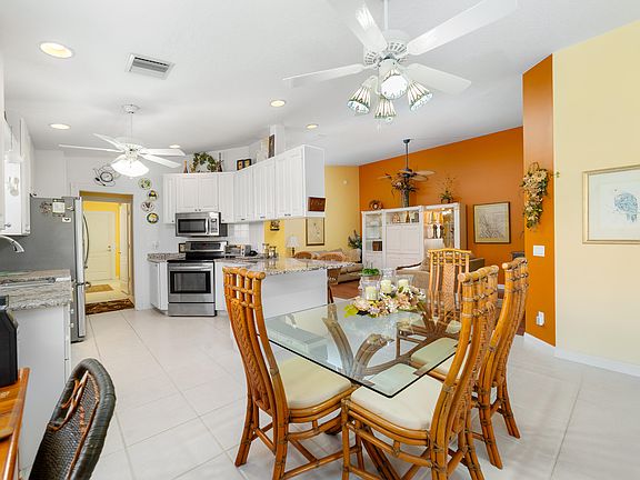 Welcome to this beautifully maintained villa in The Florida Club, featuring the sought-after Capri floorplan. Light-filled and inviting, the interior boasts a spacious layout with updated A/C and water heater, a central vacuum system, and a split-bedroom design for privacy. The kitchen offers abundant white cabinetry, granite countertops, and stainless steel appliances. The primary suite includes a walk-in closet, dual sinks, and a spa-like atmosphere. A generously sized guest bedroom sits at the front of the home with its own walk-in closet. Outside you'll enjoy the screened lanai with serene views of the 11th fairway and a tranquil lake--perfect for relaxing or entertaining. The attached 2-car garage adds convenience and storage. The Florida Club is an active, gated golf community in Stuart, FL, offering residents access to golf, tennis, a community pool, pickleball, and scenic oak-lined sidewalks ideal for leisurely strolls. Experience comfort, style, and the Florida lifestyle at its best. Home comes completely furnished. Low HOA fees.