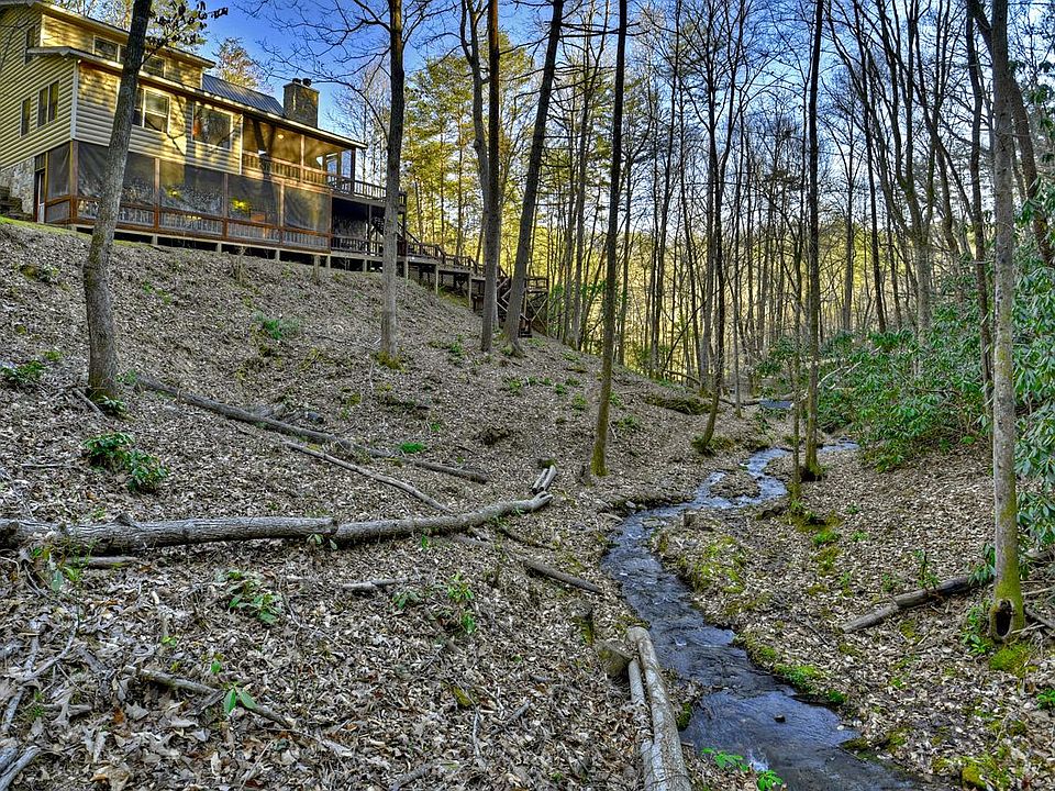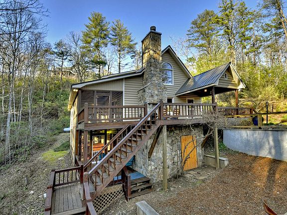 A true mountain experience... Just a hop, skip & jump from downtown Blue Ridge, this private haven is just what you've been dreaming of. You'll be greeted by the sound of the flowing creek and rushing waterfall, and the picturesque view of the water features sets the stage for the ultimate relaxation spot. Outdoors you'll enjoy 5+ acres to roam, two levels of decking - the hot tub deck on the terrace level, and the main level deck complete with screened porch and stone fireplace overlooking the view. This cabin offers one bedroom and bathroom on each of the three levels, an open living room & kitchen, and plenty of room for you and all your loved ones. Other highlights include mostly wood interior, stainless appliances, masters on two levels, game room on the terrace level, furnishings available to purchase, and additional acreage is also available to purchase. You'll appreciate the proximity to town, easy access, and having all of North Georgia's amenities at your fingertips. Whether you're considering part or full-time living or a rental investment, this is one you don't want to miss.