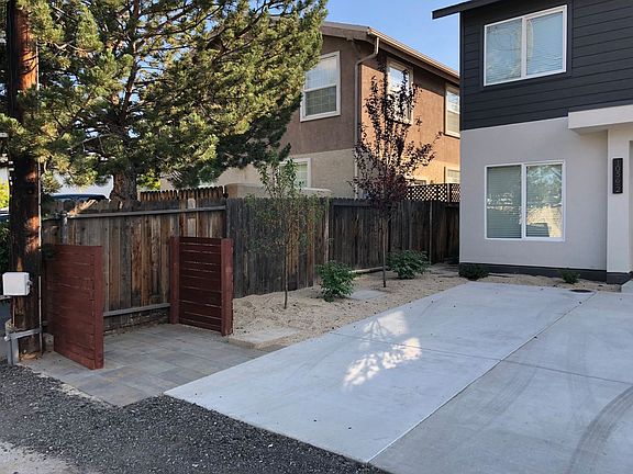This 1,152 square foot, 2 bedroom, 2.5 bath townhouse is conveniently located in the heart of Midtown Reno; the property is within walking distance of coffee shops, restaurants, bars and boutiques, with many more conveniences on the horizon of this flourishing neighborhood. The ground level floor plan features a great room that leads into a kitchen with state of the art stainless steel appliances, soft closing shaker cabinets with plenty of storage, an island with a bar top, quartz countertops and a walk in pantry. Hand scraped bamboo flooring runs throughout the 1st floor and an architectural grade sliding door opens up to an outdoor patio perfect for barbecuing and lounging. Shaker and satin etched glass doors, as well as modern brushed nickel fixtures style the house in a contemporary fashion. The second floor features two master bedrooms, both with an ensuite and a walk in closet. One master bedroom ensuite has a modern ultra deep tub, and the other master has a floor to ceiling tile in shower with a bench. A washing machine and dryer are ideally located on the upstairs adjacent to the 2nd floor landing. The exterior of the townhouse is adorned with a diversity of irrigated trees, shrubs and plants, as well as a fenced in backyard and two off street parking spots in the front driveway.