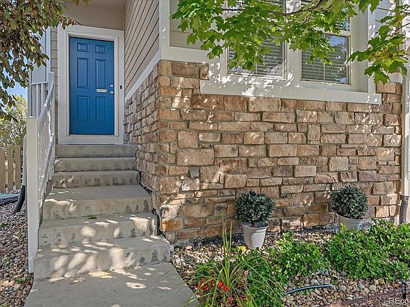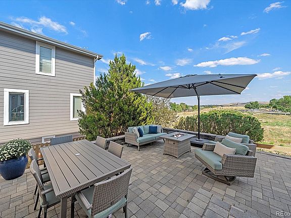Incredible greenbelt location with no one behind you, wow. You look out to the scenic Bluffs from the beautiful paver patio added in 2022 making this space a showstopper. This stunning home in the Hearth is very open and in perfect condition. When you walk in you will be greeted with a two story great room with built in speakers flooded with light and a wall of windows that looks out to the yard and the scenic Bluffs behind. The entire main floor is real hardwood floors. The kitchen and dining room are highlighted with a cozy gas fireplace. The kitchen features granite counters, ss appliances with gas stove, and center island. There is both a main floor office plus a loft upstairs that could be 2nd office or use as you like. The secondary bedrooms upstairs are a great size with ceiling fans and they share a full jack and jill bath with tile counters and floor. The primary bedroom is so spacious and also has a ceiling fan, recessed ceiling and features a luxurious 5 piece bath. It has a seamless shower, garden tub, solid surface counters, tile floor, and walk in closet. Downstairs you will find a spacious rec room with built in shelving, integrated speakers and a bar fridge. There is also an unfinished storage room, ideal for use as a workout space or workshop. Additionally, this level features a full bath with granite counter tops and a tiled floor. The house was painted in 2022, roof replaced with high impact shingles in 2023, newer water heater, newer blower on furnace, radon mitigation system, new sump pump, and nest thermostat, and nest smoke/co2 alarms. You will love the beautifully landscaped yard and the mature trees including fruit trees. Seller just put in brand new driveway. Come enjoy any of the rec centers in Highlands Ranch, and the amazing mountain biking/hiking trails just steps away. 4 playgrounds walking distance away. Close to shopping and dining. Great access to mountains, C-470, I-25, and DTC.