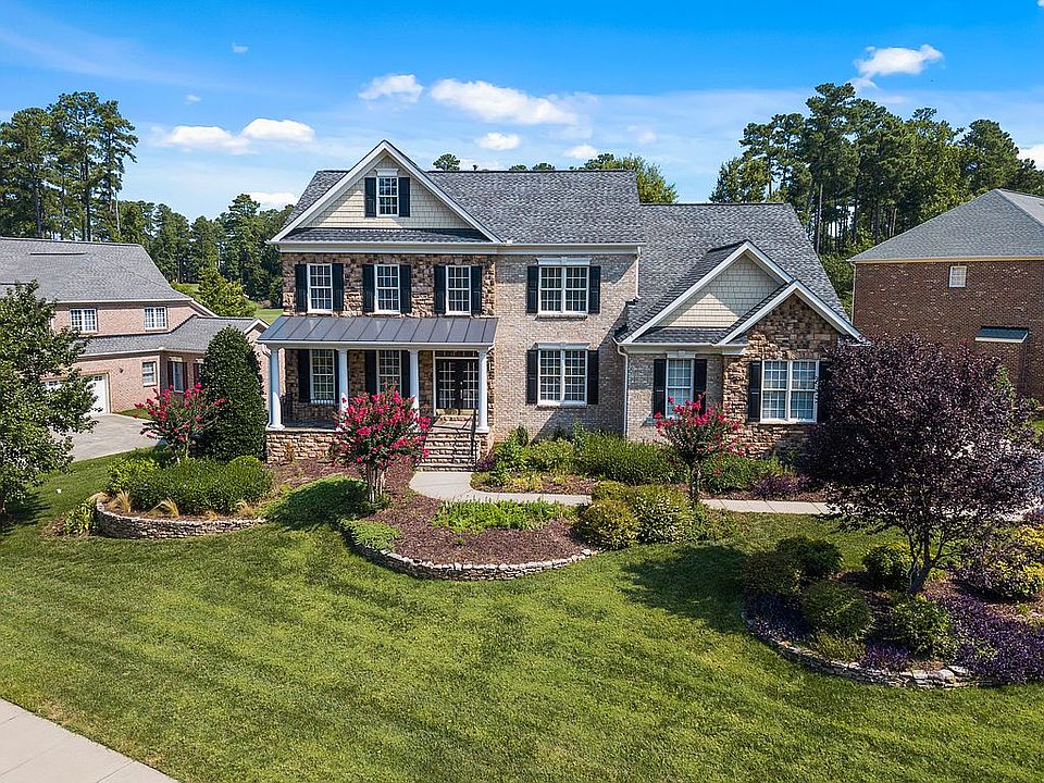 Situated in the exclusive community of Brier Creek Country Club, this all brick & stone executive home has it all! The home sits just a few doors from the Brier Creek clubhouse with sweeping views of the Arnold Palmer designed golf course from both the front and back. This exquisite home features 4 bedrooms with first floor master, large bonus room, 3.5 baths, a home office, and a spacious loft area that can serve as a second family room with amazing views. The property is incredibly landscaped and features a backyard complete with large shaded patio with beautiful views and a no-maintenance Trex® deck. The gardens at the front of the home host charming hummingbirds and dragonflies to entertain guests on the flagstone rocking chair porch with background views of the 2nd hole. Even the views from the massive walk-out basement are stunning! MLS #2337154