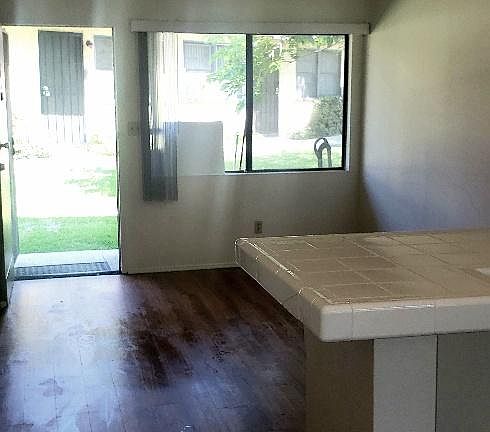 1 bedroom/ 1 bath lower apartment with open floor plan, laminate/wood flooring throughout except the bedroom, full-size kitchen with stove and dishwasher, wall heat, and A/C, parking space for one vehicle. Close to Fwy, shops, restaurants, and public transportation. Photos are of like unit.