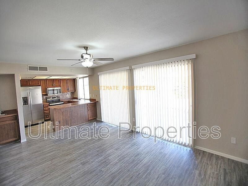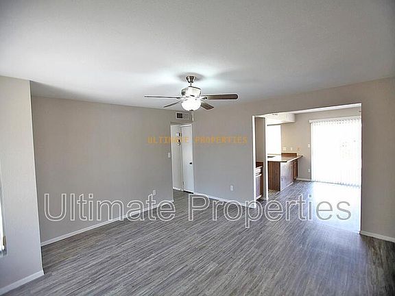**UPGRADED** 2 Bedroom + 2 Bathroom home. Upgrades throughout!! Kitchen features stainless-steel appliances, range/oven, built-in microwave, dishwasher, refrigerator. Separate family and living rooms. Ceiling fans and blinds throughout. Master suite features walk in closet. Backyard features covered patio, grass and desert landscaping. NO HOA!! This home will not last long!