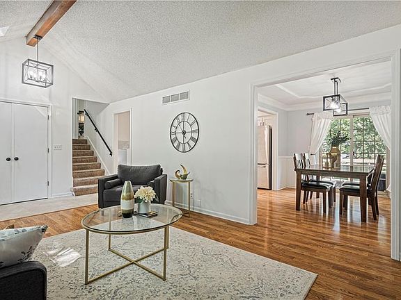The modern kitchen is equipped with stainless steel appliances and a spacious island, making meal prep a breeze. The formal dining room also has easy access to the deck, ideal for outdoor gatherings. Take a rest in the large master bedroom, designed for ultimate relaxation and comfort.