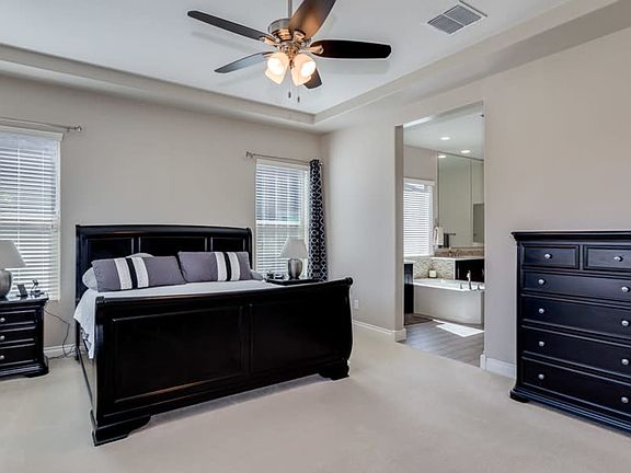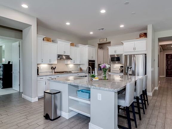 Fabulous Meritage "Annapolis" model built in 2016! Loaded with upgrades, this 4 bed/3 bath plus den home has a gourmet kitchen with slab granite, shaker cabinets, wall ovens, butler's pantry, the works! Beautiful designer finishes and colors, master bath has glass walk in shower, soaking tub and his & her vanities. Backyard grass area & paver patio with fire pit. Located on a .26-acre lot in Eastmark with quick 202 freeway access. Too many details to list, but you will not be disappointed!