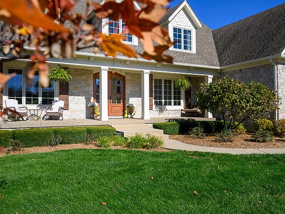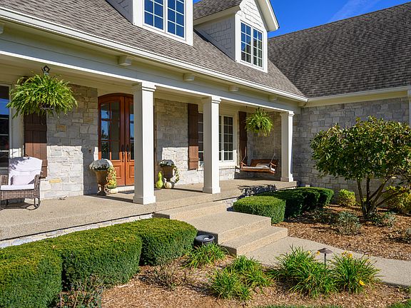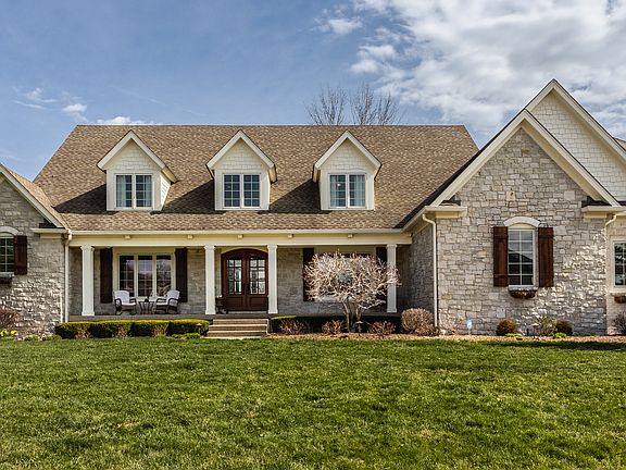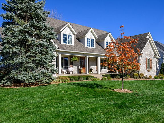 Elegant Cape Cod with 8,000+ finished sq ft and a 4 car garage. Step into the majestic entry with views overlooking the rear yard, pond & fountain. The gourmet kitchen features a center island with seating for 6. Granite counters, a spacious walk-in pantry, 6 burner gas stove, double ovens and built-in refrigerator. Enjoy the Hearth Room with a cozy stone fireplace and glorious rear view. Formal living room features the second fireplace. Gracious master bedroom includes an expansive master bath with his/hers vanities, plus a most elegant closet featuring an island dresser to satisfy the discerning buyer. There are 3 oversized en-suite bedrooms upstairs, plus an enormous loft with vaulted ceilings high enough to accommodate a golf simulator. Walk-out lower level includes the third fireplace plus a full bar, fitness area, theater room and the 5th en-suite bedroom. The lower level opens to a private patio designed for relaxation and entertainment. Plus, spacious unfinished bonus room over garage ready for more finished space upstairs. Quality construction, one owner home, has been meticulously maintained. 2 new HVAC units, 1-New A/C. Whole house water filter plus new tank-less water heater, multi-room audio system and security alarm. Don't miss this opportunity.