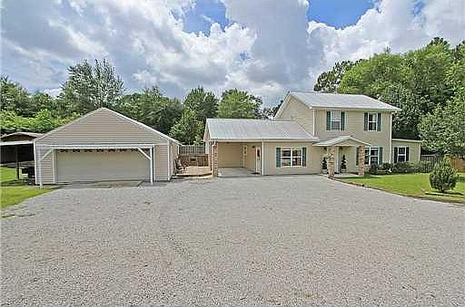 This beautiful home sits on 3 acres with a stocked pond. The home has a second story suite complete with a kitchen and dining area. Also on property is a carport, a detached 2 car garage, a detached metal building with roll up doors for boats or an RV, a backyard oasis and many other amenities.