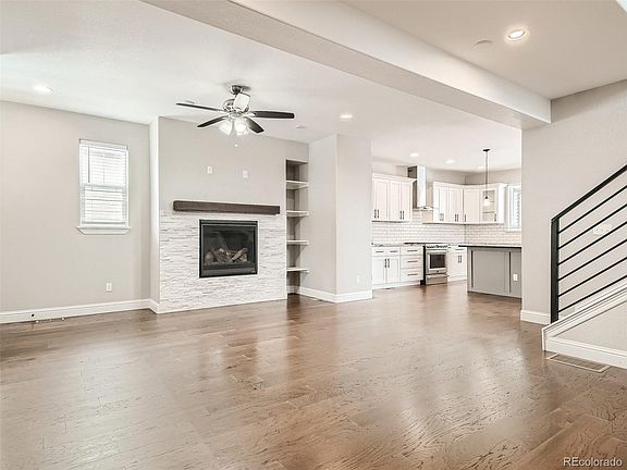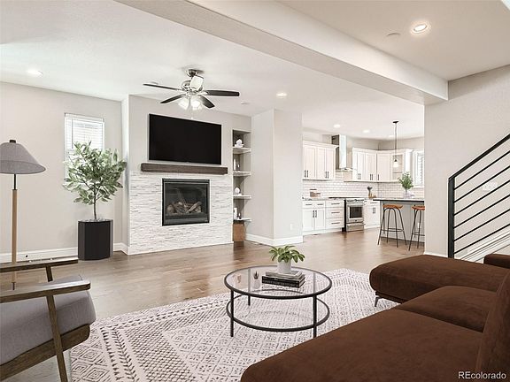 Gorgeous 2 story home located near tons of retail, restaurants, entertainment, Hwy 2, schools, and Turnberry Park! You will be impressed the moment you enter with the beautiful finished, hardwood flooring, and high ceilings. The kitchen is a chef's dream with plenty of cabinet storage, a pantry, granite counters, a large central island, and luxurious stainless steel appliances including wine fridge. The living room opens to the kitchen creating a wonderful space for conversation and features a wonderful focal fireplace. There is a main level bedroom and full bathroom, which is the perfect space for guests. The second floor features not one but TWO primary suites, each with walk-in closets and en-suite baths; one of the primary bedrooms also boasts a large deck. There are two additional bedrooms and another full bath on the second floor as well. The basement is finished and has a large rec room, including a cool contemporary fireplace, and full bathroom making a wonderful space to entertain. The backyard is spacious and fenced in for privacy and has a wonderful outdoor kitchen! Click the Virtual Tour link to view the 3D walkthrough. Welcome home!