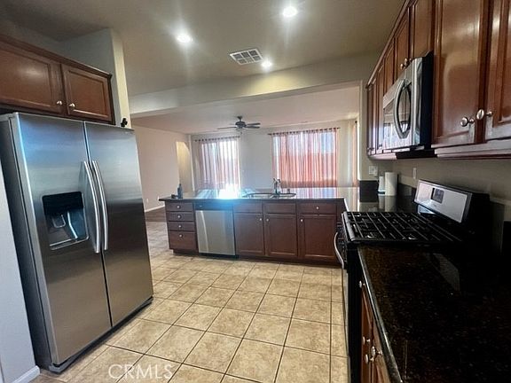 You'll love the wonderful open floor plan with spacious living room and new tile flooring! The large kitchen is delightful with GRANITE COUNTERTOPS, NICE PANTRY, STAINLESS STEEL APPLIANCES (REFRIGERATOR INCLUDED), enormous breakfast bar and beautiful bay windows in the breakfast nook - where you can enjoy the beautiful views out to the front yard. Charming master suite with adjoining bathroom that has double sinks, sizable walk-in closet and separate tub and shower. All windows at back of house are tinted to keep the house cooler in summer months. Indoor laundry room with WASHER AND DRYER INCLUDED. Home has tankless water heater and alarm system. Oversized backyard has beautiful desert landscaping and stamped concrete patio with amazing views of the afternoon sunset and mountains! This amazing community offers an incredible array of amenities that include 4 pools, astounding gym, pickle ball and tennis courts, bocci ball, pool tables and so much more! Don't miss the opportunity to make 10562 your forever home! Schedule a viewing and experience the possibility of owning a truly remarkable property in the heart of Apple Valley.