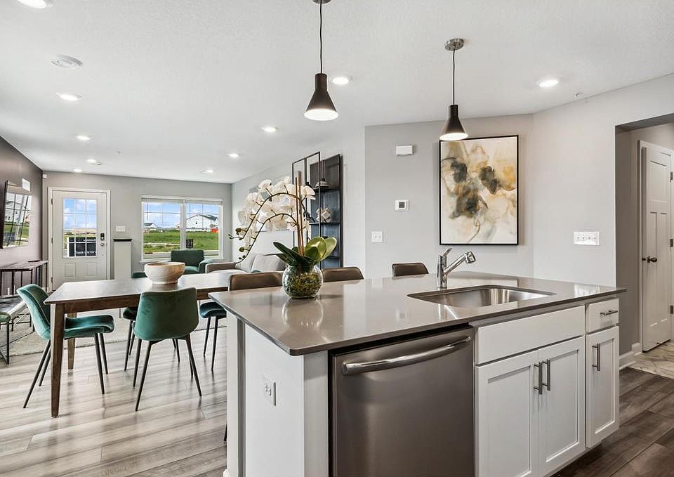 The all-encompassing kitchen, dining & great room allows for strong social engagement with guests or family in