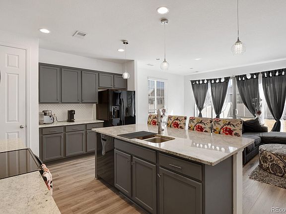 Nestled in Belle Creek this charming ranch built in 2018 is like NEW! Step inside to an open floorplan boasting tons of natural light. Channel your inner chef in the gourmet kitchen featuring granite counter tops. Retire to your primary suite with walk-in closet. Flex room is currently being used as a dinning room, but could easily be converted to a third bedroom. Close to Belle Creek Trail, community recreation center and garden, one-level living has never looked better!