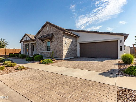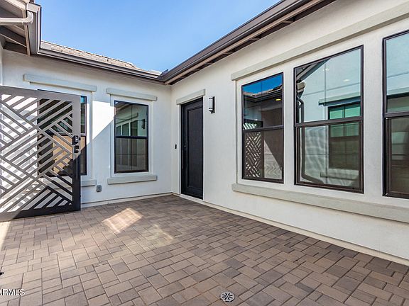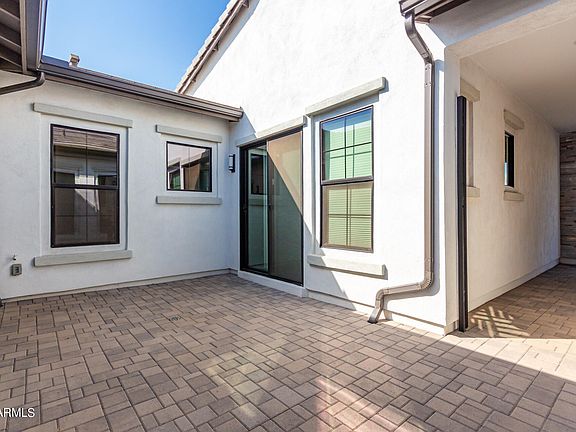 10563 E. Thorite is yours. Complete luxurious home in The Estates at Eastmark. Gated community. Premium corner lot with only one adjacent neighbor. Gated entrance to home with sitting area. 12 ft. ceilings in the great room and 10 ft. everywhere else. Modern finishes with wireless technology enabling you to control the majority of the home, including cooking appliances, lighting, music, etc. Separate Casita which includes a living room separated from bedroom/bath. Separate den with sliding glass wall featuring a fountain. Bar/game room (pool table negotiable). The backyard is COMPLETE. Heated pool/spa with lighting, fire and landscape speakers. Entertainment area including grill, 2 fridge drawers, ice chest and sink. Outdoor furniture included with reasonable offer.