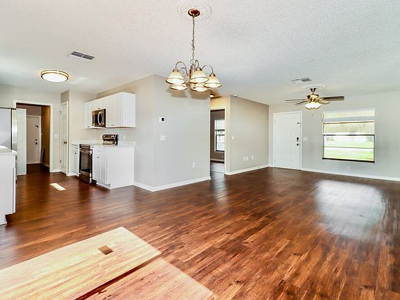 Please note, our homes are available on a first-come, first-serve basis and are not reserved until the lease is signed by all applicants and security deposits are collected. This home features Progress Smart Home - Progress Residential's smart home app, which allows you to control the home securely from any of your devices. Want to tour on your own? Click the "Self Tour" button on this home's RentProgress. Spend beautiful days in the fenced, in-ground pool at this three-bedroom, two-bathroom rental home in Spring Hill, FL. The open plan combines the living and dining rooms into an ideal entertaining space. It comes complete with exquisite flooring, a lighted ceiling fan, and a chandelier. A sliding door opens to the backyard, providing easy access to fresh air and sunshine. The white kitchen has stainless-steel appliances and lots of counter space making it easy to prepare meals. The vast primary suite offers plenty of space to unwind at the end of the day. Its private bathroom, across from a walk-in closet, includes a shower and tub combo and a vanity with cabinets and drawers. Apply now see this home in person.