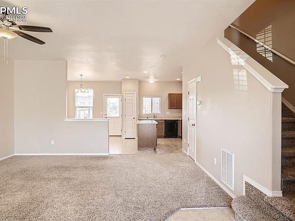 This is the large 1306sf 2-bedroom floorplan at Countryside! A Fountain, Colorado community only a trail away from Metcalf Park and conveniently located near Ft. Carson as well as local schools. The townhome features two large bedroom suites each with their own attached full bath. The laundry facilities with included washer/dryer is between the two bedrooms on the upper level. The lower level features an open floor plan between the living room, kitchen and dining room, and includes a half-bath. The kitchen features all appliances, a pantry closet and island with extra storage and workspace. The dining room can accommodate a 4-6 person table as well as a sideboard for additional storage. Both upstairs bedrooms as well as the living room have ceiling fans and the unit overall has central air conditioning. Horizontal white blinds adorn all the windows. There is additional townhome storage in the large crawlspace that runs under the main level. There is a large front porch with room for a couple of chairs and small table. BBQ grills are allowed at the rear of the unit accessible by the back door off the kitchen/dining area. There are two reserved parking spaces outside the front of the townhome. Come take a look at this townhome today!