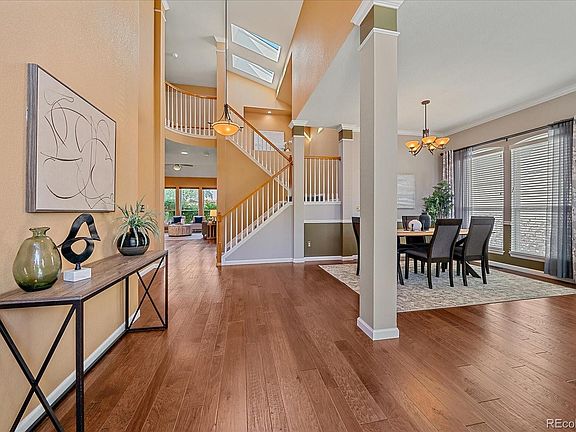 Fabulously maintained David Weekley home with a main level primary bedroom backing to open space in The Enclave in Stonegate! Enjoy a peaceful backyard setting, privacy and easy access to nearby trails and paths. Inside, the main level features a front living and dining room area, a tastefully updated kitchen with hickory wood flooring, granite counters, rustic maple cabinetry, a pantry closet with shelving system, stainless appliances, breakfast bar and breakfast nook. The kitchen flows nicely in to the family room with an updated mantel, gas fireplace (with blower) and slate wall. The primary suite is a true retreat featuring bay windows, a walk-in closet with natural light and a remodeled 5-piece bathroom with an abundance of cabinets and heated floors. The main level also includes an updated powder room, laundry room (washer & dryer included) with upper maple cabinets and plumbing for a future utility sink. Upstairs you’ll find new carpet, two bedrooms with walk-in closets, a loft (which could be an additional bedroom) and a full bathroom. The finished basement provides two additional bedrooms, another 3/4 bathroom and ample storage space. Outside enjoy a large back deck with an outdoor gas line for BBQs and well maintained landscaping. The home's exterior has been upgraded with a Class 4 stone-coated steel roof and was repainted in 2019. Enjoy the south-facing driveway (snow melt!) and a spacious 2 ½-car garage complete with storage cabinets, shelving, and a workbench- perfect for organization and hobbies. Other upgrades include Hunter Douglas window shades, high-efficiency windows and HVAC, a whole-house water softener, many light dimmers and updated lighting fixtures. Enjoy all that the Stonegate community has to offer including a very active Social Committee and neighborhood events, pools, parks and walking paths, with the added convenience of being walking distance to the elementary school. Check out the floor plans with the photos as well as the 3D tour!