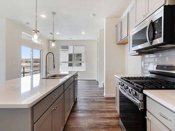 Photos are renderings of the models. Brand new floor plan at The Commons at Victory Ridge, conveniently located in the growing Interquest corridor. The Clark floor plan offers low maintenance living and features a 2- car attached garage, the 2nd floor offers open concept living including a well-appointed kitchen with a large island, stainless steel appliances including gas range. On the third floor you will find the conveniently located laundry, and generous Master Suite with a large shower, and luxurious counter space with double sinks. Second bedroom has bathroom attached making this en-suite ideal for guests. Standard features include granite counters throughout, tile flooring in bathrooms, luxury vinyl plank flooring, a ceiling fan prewire in all bedrooms, smart home tech package, keypad entry, and Honeywell thermostats.