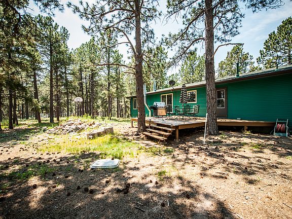 Large raised rancher with tons of privacy and over 2,900 square feet located close-in to amenities on 2.8 treed acres in southwest Black Forest!The property is fully treed with a small meadow for horses on the western side. Mostly fenced with separate pastures. Large island kitchen with double oven, gas cook-top and slab granite counters. New carpet, interior and exterior paint and freshly stained deck. Oversized two car attached garage. Room to grow in the basement with additional rough-in bathroom. Award winning District 20 Schools!! Large barn, chicken coop and storage shed included as-is.