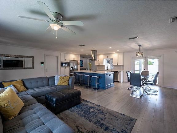 Located in a sought after school zone this home fits most Buyer's parameters! Open floor plan with split bedrooms. 4 bedrooms with 2 full baths. PVC sewer lines. New A/C installed in 2021. Gorgeous chef's kitchen with stainless appliances and quartz counters. Remodeled baths and two separate living areas. The outdoor space in this home has it all as well. Enjoy breezy Eastern exposure while you relax at the pool surrounded by travertine pavers or under the covered screened patio. There is a nearly new PVC fence surrounding the entire yard and no homes behind this property giving you total privacy. This is the one you have been waiting for!