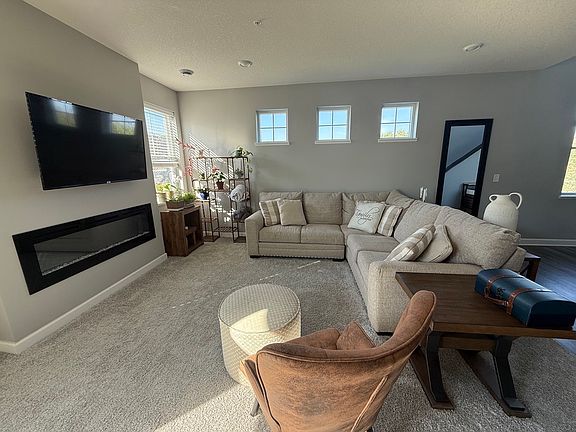Cozy living room with electrical fireplace - perfect for Minnesota winter