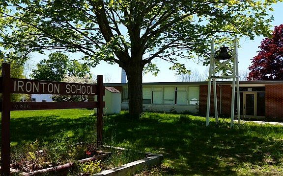 Previously the Ironton School. This brick building hosts a large open congregating area, one office, a kitchen and two restrooms. Backyard is fenced in. Could possibly be used for commercial use but a zoning variance would need to be submitted and approved through the township.