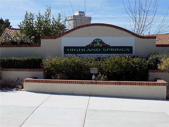 Cute single story home located in the gated 55+ community of Highland Springs Country club in Cherry Valley. This wonderful 2 bed room 2 bathroom is on the golf course and features: vaulted ceilings, Tile flooring at entry and all bath rooms, wood laminate flooring throughout except for the bedrooms that have berber carpet. There is a beautiful open concept kitchen with backsplash and dinning room with double sided fireplace that leads into the large living room to entertain additional family members or guests. There are two large bedrooms with sliding window access in the master bedroom. Both bathrooms have been recently remodeled and have easy access walk in showers in both. The second bedroom has a shower tub combo. Step out in the backyard area and enjoy spectacular view of the pristine golf course and stay cool under the shade of your large Alumawood patio cover toenjoy for any season. The wonderful home is conveniently located near the club house which features free golf, large pool, spa, tennis courts, and weight room. Sale includes the refrigerator. Come see today!!