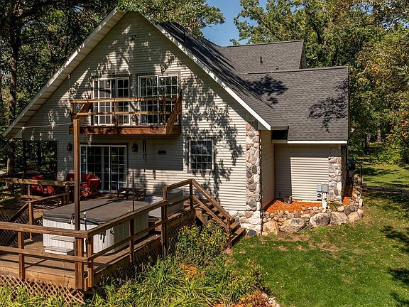 Discover this stunning 4,000 sq ft home nestled on 19 wooded acres between Garrison and Brainerd—offering space, privacy, and modern comforts. The main level welcomes you with a spacious foyer and a gourmet kitchen featuring stainless steel appliances, quartz countertops, a center island, and a breakfast bar. The heart of the home is the expansive living room with a soaring stone fireplace and panoramic views of the serene backyard. Enjoy seamless indoor-outdoor living with a dining room that opens to a wraparound deck and relaxing hot tub.