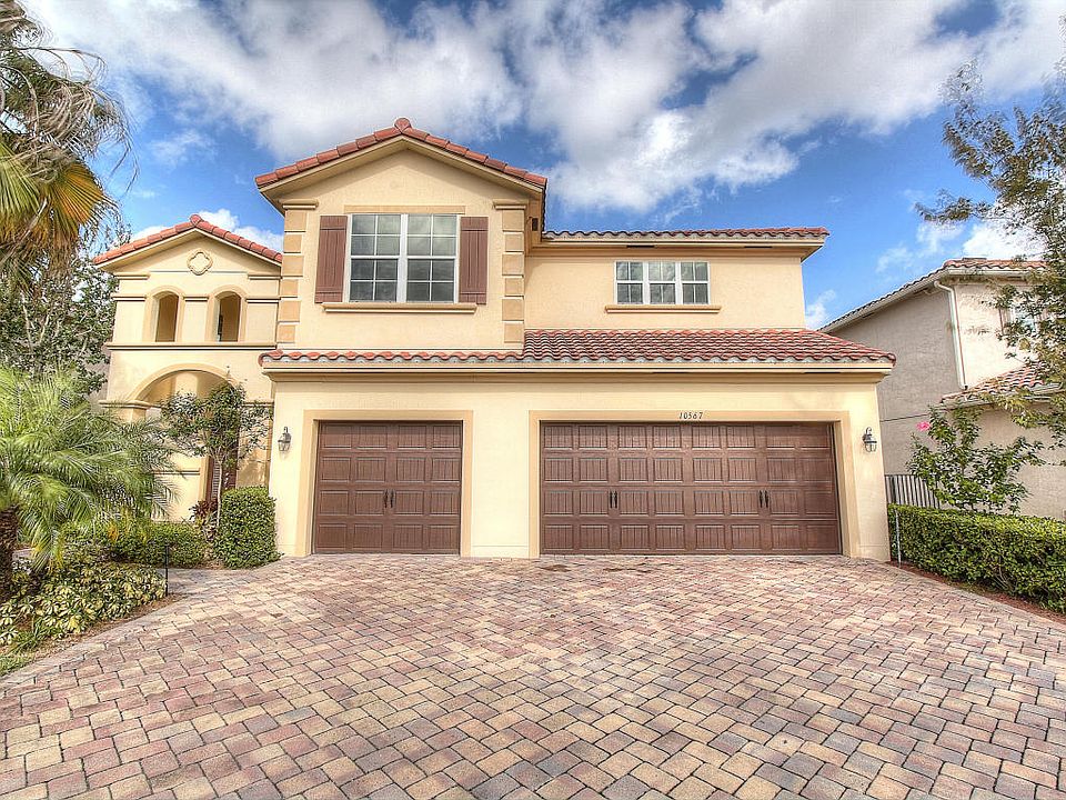 Exquisite, large estate home with expansive lake view! 4 bedrooms, 4 baths + sitting room/office (optional 5th bedroom) + loft & 3 car-garage. Newer construction and in turnkey condition! HURRICANE IMPACT WINDOWS! Huge kitchen with 42-inch ebony maple cabinets, granite countertops, stone backsplash, under cabinet lighting, stainless steel appliances and large center island. Guest room w/ full bath downstairs. Master bedroom and 2 additional bedrooms upstairs each with their own bath + huge loft as a bonus area! Also, a 16X12 master sitting room/flex room w/ French doors-original builder plan 5th bedroom option-easily converted. Located in the highly desirable 441 area of Wellington w/ retail, restaurants, parks, A-schools and equestrian/polo right nearby! NOT A FORECLOSURE OR SHORT SALE!