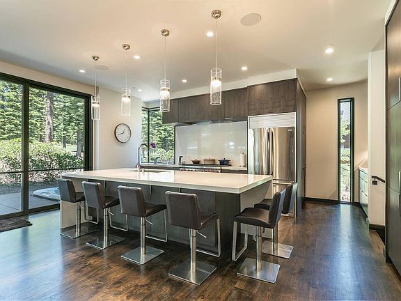 Tucked into the esteemed Martis Camp community in Truckee, just a snowball's throw from the famous Northstar Ski Resort, this home artfully blends the modern mountain design with the rustic allure of the surrounding Tahoe wilderness. In the winter, the nearby golf course transforms into one of Martis's most delightful sledding hills.