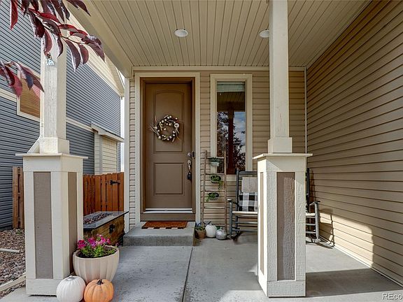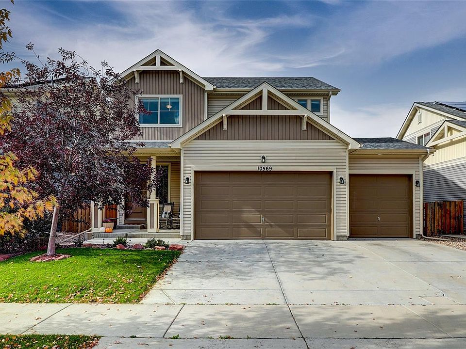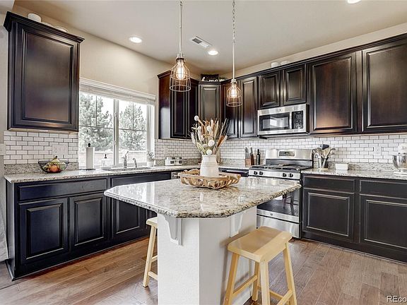 Welcome to the Turnberry community and welcome to your new home! Southeastern facing 3-car garage home stays sunny in all seasons and warm sunlight fills the home from every angle. Step right in and marvel at the brown hardwood floors in your entry way with closet storage and powder bath on main level. This open floor plan brings your living room, dining room and kitchen all together. The kitchen provides Giallo Ornamental Granite counters with a 4" granite backsplash, contrasted with Maple Java stained cabinetry, and stainless steel appliances with a gas range range. Plus the kitchen is designed with a center island providing ample use of space and storage in the open kitchen with a large pantry! The living room/great room is perfect for cozy days and entertaining your friends and family. Upstairs you will find a large primary suite with a spacious walk-in closet and en-suite primary bathroom with large walk-in shower and double sinks. Upstairs also features; two additional bedrooms, full guest bathroom, and the oversized laundry room-- all close and convenient. The unfinished basement is awaiting your personal touch and is an empty canvas to add additional bedrooms, game room, office, gym and more. Beautiful grassed back yard; fully fenced, and amazing mountains views so you can enjoy summer BBQ or winter snowball fights and more. If you want more room to play- the community pool, park and playground are also yours to enjoy in all seasons. Easy access to lots of shopping, food, Denver International Airport, and places to hang out. *** One of the best homes on the block- be sure to book your showing and make this house your HOME!