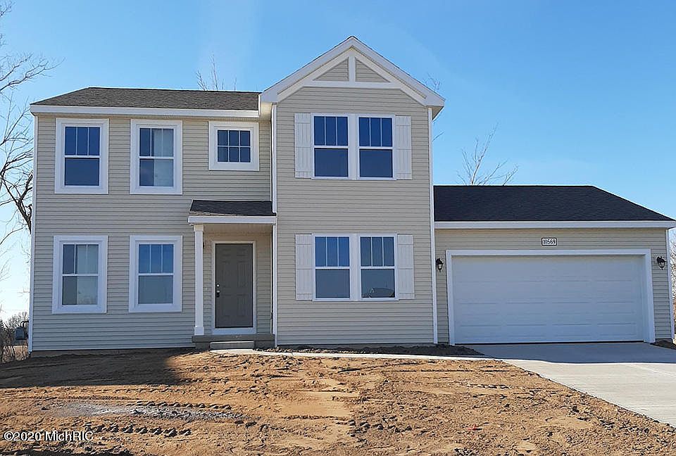 Move-in Ready New Construction! This 4 bedroom, 2.5 bath home in Springfields of Allendale is on average 4 years newer and 413 sq ft larger than similarly priced homes in the area! Residents attend Allendale Public Schools and enjoy many choices for dining, grocery stores, seasonal produce markets and entertainment. RESNET ENERGY SMART, 10 YEAR STRUCTURAL WARRANTY. Wow, with over 2200 sq ft of living space this floorplan has seamlessly combined convenience and style. The main floor welcomes you from the foyer, with a convenient powder bath tucked away, past a den, that makes a great flex space, into the large dining room, perfect for special occasions, on towards the kitchen which will have white cabinets, a center island with pendant lighting, granite counters, tile backsplash, and SS dishwasher, microwave, and range. Upstairs a master suite with a huge WIC and private full bath, 3 more bedrooms, another full bath and 2nd floor laundry, complete this home. Daylight basement.
