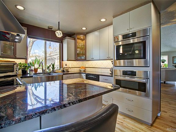 Amazing home with updates throughout. Entering through the front door you'll find the cozy living room with vaulted ceilings, hardwood floors and a gas fireplace. Step past the dining room into the gourmet kitchen featuring granite countertops, 42" cabinets, an apron front sink, a touch faucet, beautiful lighting features and Bosch oven/speed microwave and Bosch touch cooktop that includes bridge element for griddle! Plenty of cabinets for all your kitchen storage and pantry needs. Down the hall is the primary suite with a walk-in closet, remodeled bathroom and a view of the backyard. The den/office is also on the main level with an opening to the kitchen used for a coffee bar. Across the hall is the power room with a raw edge marble countertop and a gorgeous light fixture. Upstairs you will find a large loft that overlooks the living room with a built-in desk and a door with sidelights opening out to the second story deck. The upper bedroom and another remodeled bathroom are also upstairs. Going down to the large, finished basement, you'll find a T/V room with built-in shelves, another gas fireplace and a sound system. There is a wet bar, wine fridge, another bedroom, an updated bathroom, a large storage room with a high efficiency furnace and plenty of room for a dining table and a full-size pool table. Moving outside, a Hot tub and large patio are great for entertaining. There is a water feature, yard, shed, built in bar and large trees to shade the house. The hot tub has 4 interchangeable jet packs. Other features of this home include mudroom/laundry room, oversized garage, 3 egress windows in basement, wheelchair access to front door and central air conditioning. The refrigerator and freezer in garage are included as well as refrigerator/freezer in the storage room. Close to Westridge Elementary, trails, parks, shopping and C-470. You won't want to miss out on seeing this fabulous home with fantastic finishes throughout!