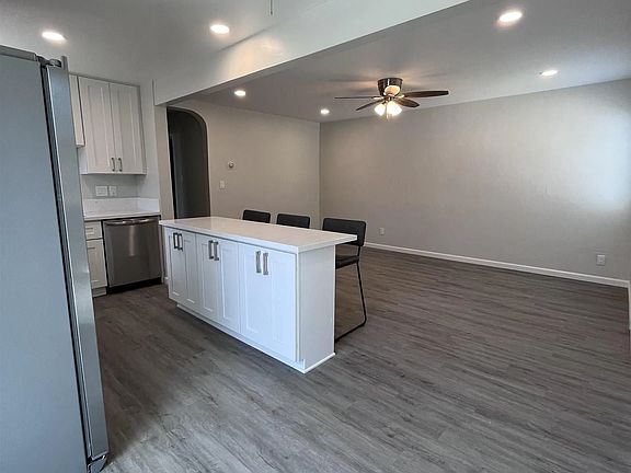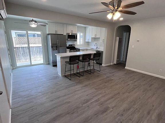 Single Family Home with updated kitchen, quartz, countertops, stainless appliances, bathrooms, washer and dryer hook ups, LED lighting, vinyl plank flooring , plus additional Bonus room could be used as an additional bedroom. Home has three off street parking spaces, large covered patio, large rear fenced in yard with fire pit and two storage sheds. Walking distance to restaurants, stores, bus, lines and just minutes to freeway access and Parkway plaza mall. Pet allowed with Pet Deposit. Call for more information and showings.