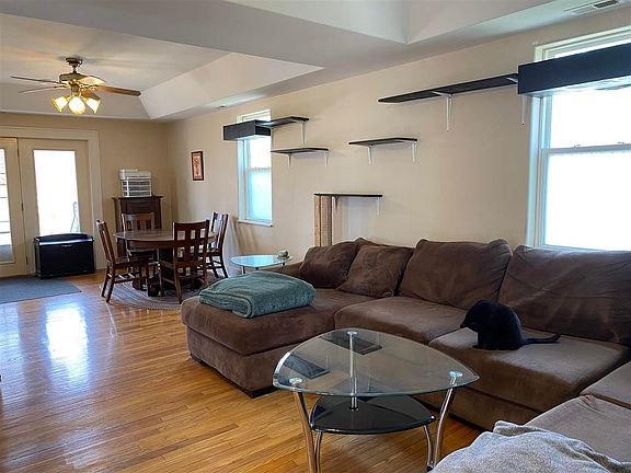 Wait till you set your sights on this sweet home & garage combo! Great functional main level with hardwood floors throughout kitchen, dining & living rooms + porch for more & a half bath. Upstairs there are two good size bedrooms each with walk in closets, one one with its own private deck. Outside there's a large deck for relaxing and entertaining. But then we come to the garage, which is an oversize 2.5 car drive through with alley access. It has its own 3/4 bath with tankless water heater, climate control with mini split, and 8' doors. It has a second story that is fully finished & ready for use as a studio, or other space as you see fit. Fantastic location with Cedar Valley nature trail just 1/2 mile away, New Pi coop, hospital, easy access to 380, & more. See attached update list.