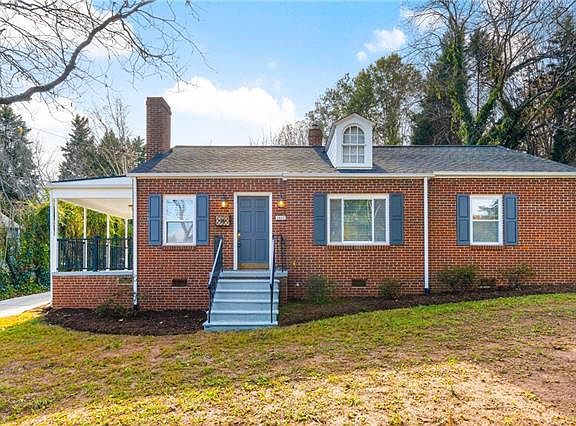 Precious brick bungalow in Forest Hills offers charming period details and a master suite addition with private bathroom and walk-in closet! The front entrance leads into an open living room with gas log fireplace, door to covered side porch, and adjoining dining room. The kitchen offers stone countertops, stainless appliances, and adjoining laundry/mud room. A central hallway leads to three bedrooms, including a master suite with private office/den. The updated hall bath offers basketweave marble floors and updated vanity with carrara marble vanity top. Just completed is all new interior and exterior paint, refinished hardwood floors, new concrete driveway, and new side porch posts and railings. Architectural shingle roof (2006), replacement vinyl windows (2005). Located within short walking distance to 4 major city parks, biking trails, Lake Hickory, and the new City Walk and River Walk coming to NW Hickory. All you have to do is unpack!!