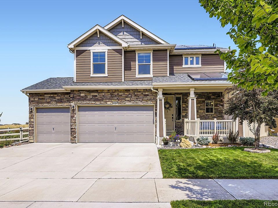 Discover this stunning 4-bedroom, 3-bath home located at 1057 Acadia. Situated in the highly desirable Erie Highlands Neighborhood with access to the clubhouse and outdoor pool amenities! Within walking distance to Highlands Elementary School. Meticulously maintained, originally built with the highest finish packages available, ensuring premium quality and luxurious features throughout. Enjoy the beautifully landscaped yard with breathtaking, unobstructed mountain views, cozy evenings by the built-in gas fire pit, and the serene privacy of surrounding open space in this stunning home. Includes a large three-car garage with ample storage, potential for an at home gym, plus both of your vehicles! The home has an unfinished basement with endless potential, perfect for future customization. This home combines spacious living, modern finishes, and exceptional craftsmanship throughout. Schedule your private showing today and see what could be your future home!