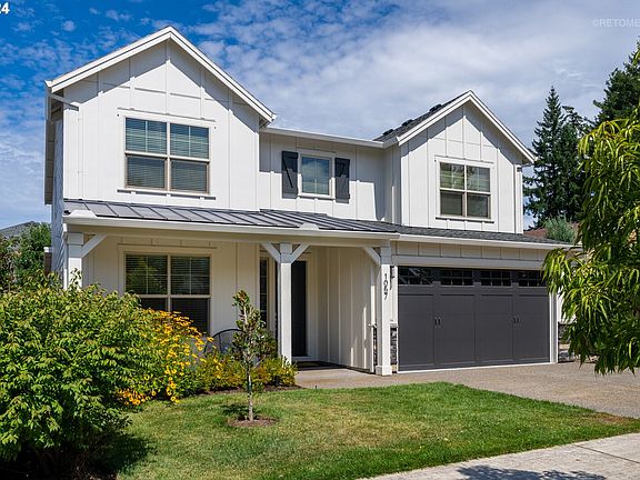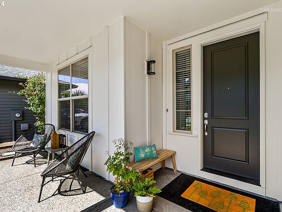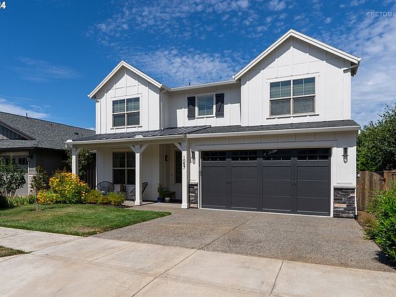 You will be delightfully welcomed as you step up to this home with the darling covered front porch, stone accents and manicured front landscape. The wide entry with high ceilings & engineered hardwood flooring will welcome you as you enter. Main floor office has a nice closet and a large picture window letting the sunshine in. You will love the beautiful great room with a formal dining with modern lighting and a luxurious living room with cozy gas fireplace with stone surround & large windows looking out to your beautiful private backyard. Stunning kitchen with white shaker cabinets, quartz countertops, large island with breakfast bar and a big walk in pantry. Enjoy the beautiful mud room with room to hang your backpacks with a coat closet and another walk in closet with deep shelves to store your Costco items & extras. The wide stairwell leads you to the upper level and a gorgeous master suite. Master suite features a large walk in closet with a window, double sink tile vanity, soaking tub and an elegant step in tiled shower. Spacious bedrooms with good sized closet space. Fully fenced backyard with a great covered patio, mature shrubbery and plantings for added privacy, raised garden beds and plenty of grassy area for the kids and dogs to play. Near neighborhood park and pool to enjoy a wonderful play scape or shoot some hoops. HOA includes front yard landscaping and all common areas. You will love all the perks of living in a small town with the Wednesday markets on Main, Chalk festival and Holiday parade. A must see.