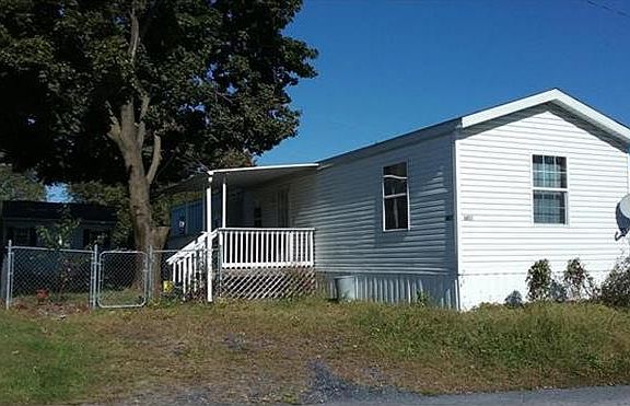 Well-maintained, 66x14 single-wide home with oil heat and central air. Ready to move in with 3 bedrooms. Skylight in bathroom. Walk-in closets in two bedrooms. Covered Porch 15x7; fenced in yard with nice size yard. Walking distance to D&L Trail - directly behind park. Home in Keystone Mobile Home Park