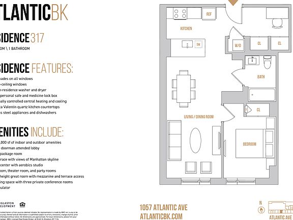 Welcome to AtlanticBK - Now Open for Tours! Nestled at the intersection of Bedford-Stuyvesant, Prospect Heights, Clinton Hill, our residences offer unparalleled access to the borough's best culture, nightlife, entertainment, shopping, dining, and green space. AtlanticBK features thoughtfully designed one-, two-, and three-bedroom residences that seamlessly blend luxury, sophistication, and convenience. Each residence boasts floor-to-ceiling windows, in-unit washer and dryer, and individually controlled heating and cooling. Many layouts offer breathtaking, unobstructed views of the Manhattan skyline. Residents will also enjoy over 35K square feet of exceptional indoor and outdoor amenities, including: 24-Hour Attended lobby 10,000 SF Landscaped Roof Terrace with views of Manhattan Skyline Fitness Center with Aerobics Studio & Locker Room Game Room with poker, pool and ping pong tables with custom banquettes Children's Playroom Golf Simulator w/ Lounge Double Height Great Room with Mezzanine and Terrace Access Theatre Room Reading Room Two Party Rooms with full kitchens Coworking Space w/ Three Private Conference Rooms Attended Package Room Bicycle Storage Equal housing opportunity. *Photos and/or 3D tours may be reflective of a similar unit and not the specific listing. *Price shown is Base Rent. Residents are required to pay: At Application: Application Fee ($20.00/leaseholder, nonrefundable); At Move-in: Security Deposit (Refundable) (100%/unit); Utility-New Account Fee (/unit); At Move-out: Utility-Final Bill Fee (/unit); Monthly: Community Amenity Fee ($75.00/leaseholder); Electric-3rd Party (usage-based); Utility-Billing Admin Fee (based on usage/unit). Please visit the property website for a full list of all optional and situational fees. Floor plans are artist's rendering. All dimensions are approximate. Actual product and specifications may vary in dimension or detail. Not all features are available in every rental home. Please see a representative for details.