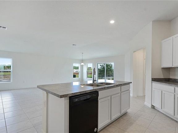 This beautiful single-story home features a popular open floor plan and ceramic tile throughout all common and wet areas with carpet in the bedrooms. You'll find three secondary bedrooms, a secondary bath, and a convenient laundry room located near the front of the home. The bright and spacious great room features volume ceilings and a sliding glass door that leads to a covered patio. The upgraded kitchen offers cabinets in Cotton color, Whirlpool® stainless steel appliances, and an island that lends itself perfectly to meal prep. The private master suite includes an oversized walk-in closet, and the master bath boasts a shower in lieu of tub with tile surround, linen closet, and an extended dual-sink vanity.