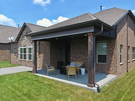 Patio covered & open w/ sunset views. Open floor plan, large kitchen w/ huge island, large pantry, additional space in Butler's pantry. Large master on main w/ his and hers vanities & closets, trey ceiling, large windows. Upstairs 2 full baths, Nice yard, extra long 2 car garage.Walk-in storage. Plantation shutters on front room windows.