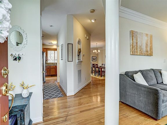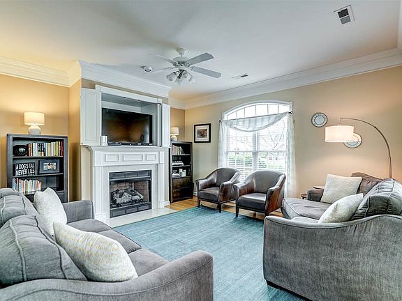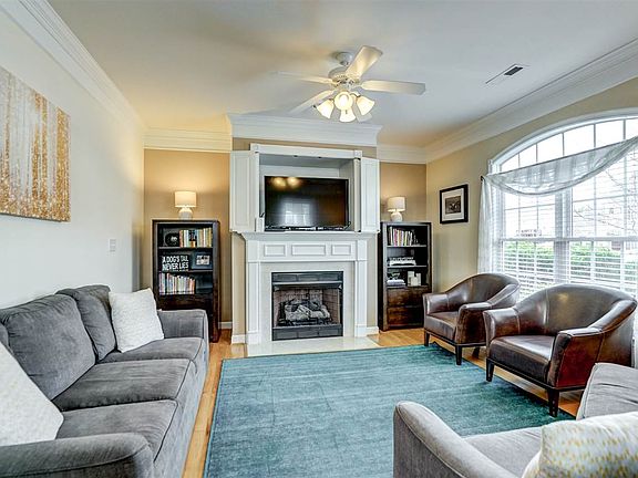Picture perfect town home in popular Forest Lakes, lawn maintenance included! Lovely spaces both inside and out! Hardwood floors throughout main living level.Charming kitchen with warm maple cabinetry, granite counters, tile backsplash and stainless steel appliances plus breakfast bar and spacious breakfast area adjacent. Large, bright living area with gas fireplace with colonial style mantle and built in media cabinet above, complete with crown molding and a ceiling fan. The owners suite boasts two double door closets plus convenient attached bath. Two additional bedrooms, a laundry area and a full bath with dual sinks complete the upper level. An inviting patio with French door access is the perfect place to relax and enjoy the outdoors.