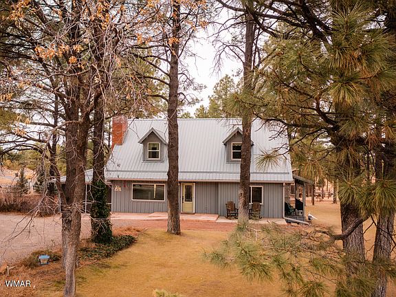 Off-grid living oasis fully renovated in 2015 sitting on 5 acres. Take in 360 Ponderosa Pine views & relax to the sound of a babbling brook flowing into your Koi Pond. Homestead is equipped with:Solar panels/ charge bank(owners sell unused electricity to CoOp).Private Well &1,200 gal water reserve tank, 500 gal propane tank +4 replacement solar panels.It features enclosed RV/ boat parking a 1,195 sqft 2 car garage &workshop/well house + RV sewer/electrical hookups. A garden potting shed, irrigated beds+ orchard. Park-like grounds lead to: an insulated chicken coop/paddock, 315 sq ft barn + reinforced steel corral.Fully fenced perimeter.1rst floor pellet stove was special ordered to cozy up to a toasty fire while watching the snow fall.