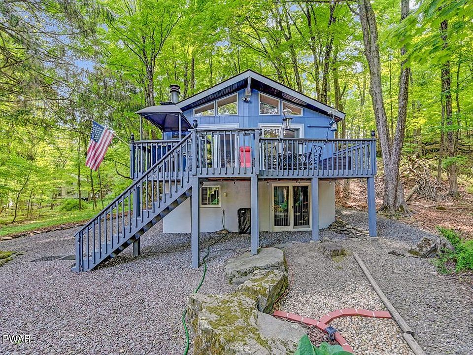 Nestled on a serene cul-de-sac in a picturesque four-season community in The Northern Poconos, this stunningly updated home offers an idyllic retreat from the bustling world. From the moment you step inside, you'll be captivated by the impeccable attention to detail and the seamless blend of modern design and cozy charm. The heart of the home lies in its spacious living area, where a corner fireplace creates a warm and inviting ambiance, perfect for gathering with loved ones on chilly evenings. This versatile space can be used as a dining or living area. The lower level features a recreation room with a free-standing propane stove, office area, 3rd bedroom and 2nd bathroom, plenty of storage. Split unit A/C. Set back for privacy where you can unwind and soak in the tranquility., Beds Description: 2+Bed1st, Beds Description: 1BedLL, Baths: 1 Bath Level 1, Baths: 1 Bath Level 2, Eating Area: Dining Area