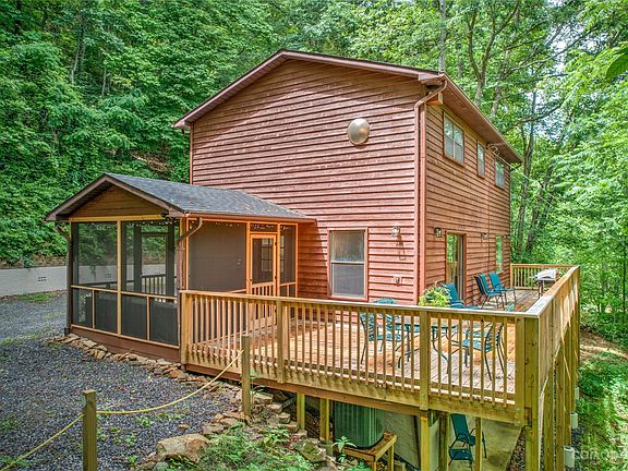**SELLER HAS ASKED FOR BEST OFFER BY SUNDAY 6/25/23 AT 5 P.M.** This newly remodeled, two-story cabin offers seasonal views on 1.69 wooded acres and is just minutes from scenic mountain top spots like Maggie Valley, Waynesville and Cataloochee Ski Area. The main entry on the first floor opens to a cozy living room with stone, wood burning fireplace, full bath, and remodeled kitchen with newer appliances. You'll also find an eat-in dining room overlooking a screened porch with first-story deck views. This three bedroom, three bath layout includes a second-story with two primary suites- both spacious and offer large walk-in closets and remodeled full baths. The below grade finished basement offers a bonus room with a second wood burning fireplace, ideal for spreading out and relaxing! The basement also has a third bedroom, laundry area, and large walk-in closets with ample storage. The gravel driveway leads to a gravel parking area for a few vehicles with turn-around room.